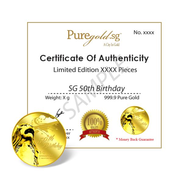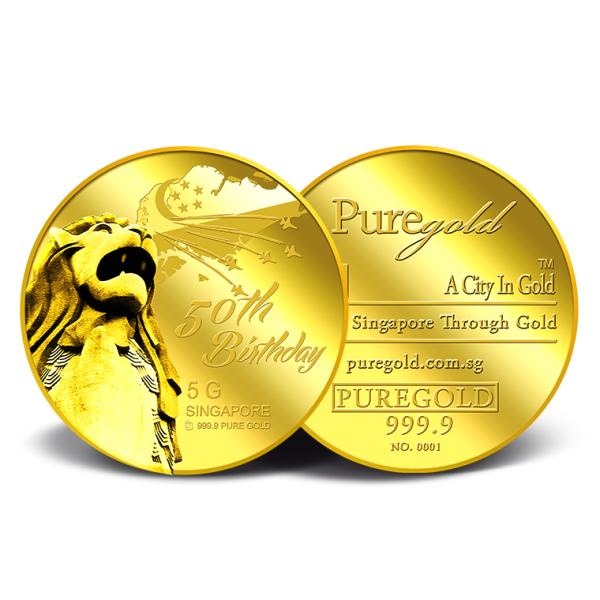 PureGold.sg will release not more than 2000 pieces of the Singapore's 50thBirthday 5g 999.9 fine gold Medallion.