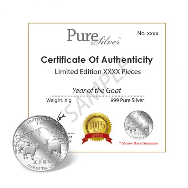 PureGold.sg will release no more than 2000 pieces of the 1Oz Year of the Goat silver medallion.
