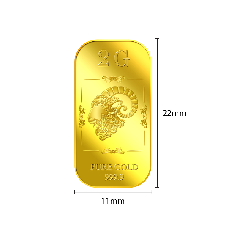 The image of Goat's head is embossed on a 2g 999.9 fine gold bar.