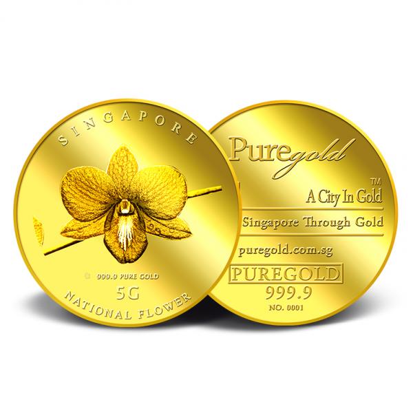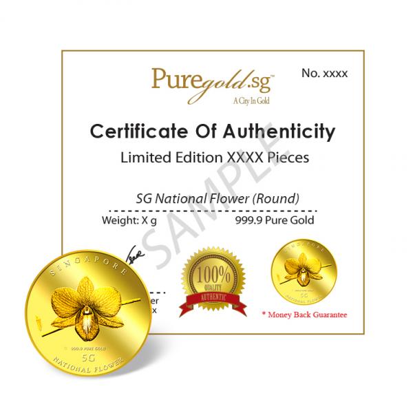 The image of Singapore’s national flower, Vanda Miss Joaquim Orchid, is embossed on a 5G 999.9 fine gold Medallion.
