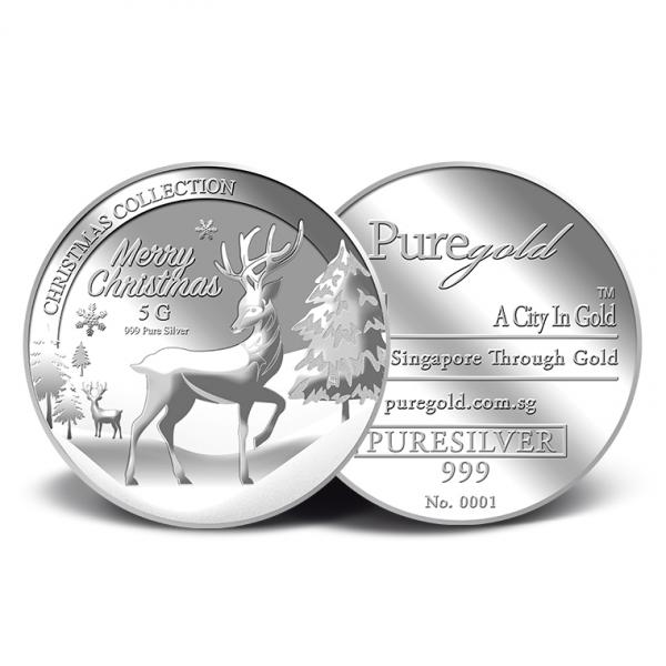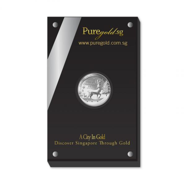 The image of Reindeer and the Snow is embossed on a 5g 999 fine silver Medallion.