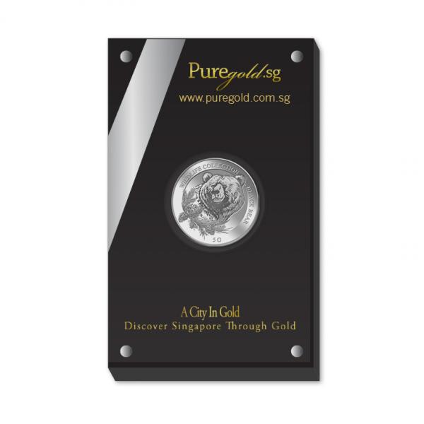 The image of an emerging black bear is embossed on a 5g 999 fine silver.