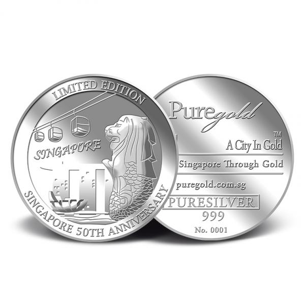PureGold.sg will release not more than 2000 pieces of the Limited Edition Singapore's 50th Anniversary 1oz 999 fine silver medallion.