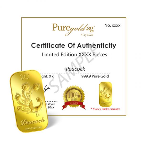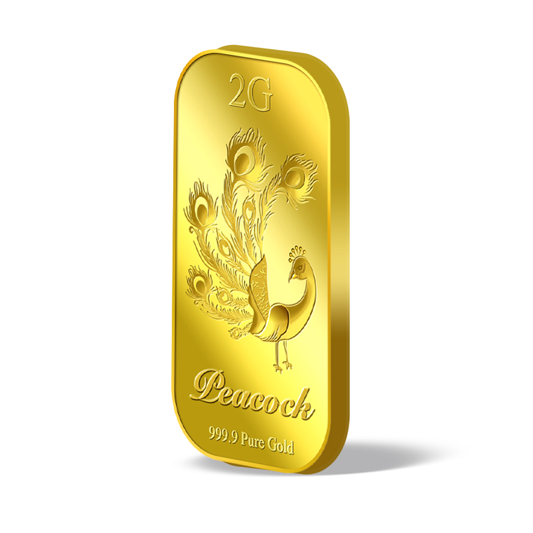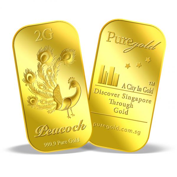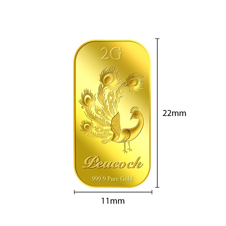 The image of Peacock is embossed on a 2g 999.9 fine gold Bar.