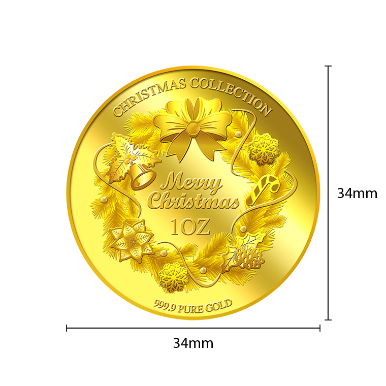The image of Christmas Wreath is embossed on a 1oz 999.9 fine gold Medallion.