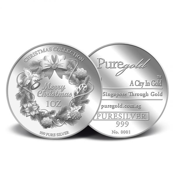 The image of Christmas Wreath is embossed on a 1Oz 999 fine silver Medallion.