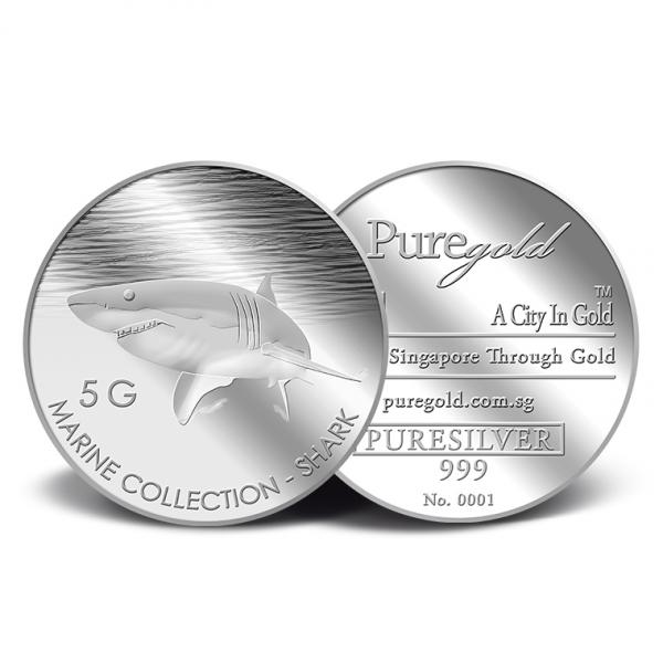 The image of the Shark is embossed on a 5g 999 fine Silver medallion.