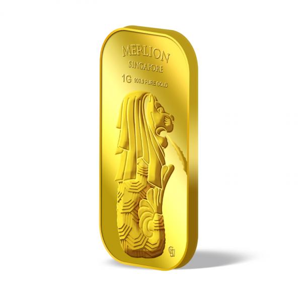 The image of Singapore’s national mascot, the Merlion, is embossed on a 1g 999.9 fine gold bar.
