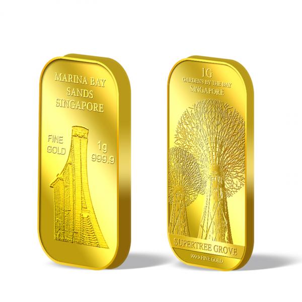 1g gold bar embossed with the image of Marina Bay Sands. Item will be sent to the Singapore Assay Office (SOA) for assaying once the order is received. Item will be delivered within 3 working days after it is hallmarked.