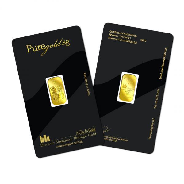 The image is embossed on a 1 gram 999.9 fine gold bar.