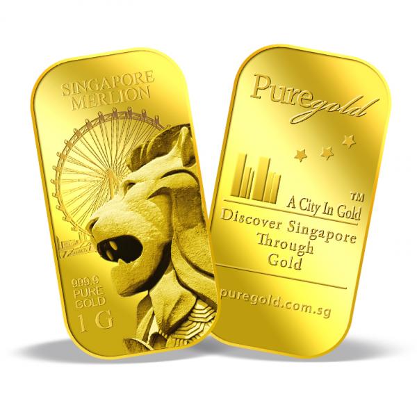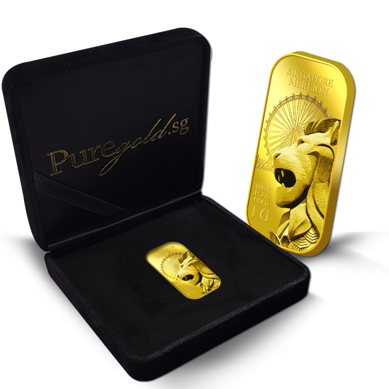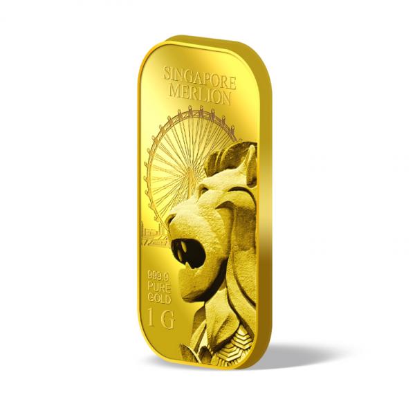 The image is embossed on a 1 gram 999.9 fine gold bar.