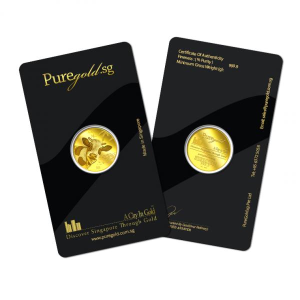 The image is embossed on a 5 grams 999.9 fine gold medallion.