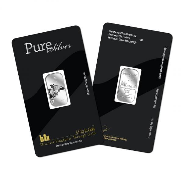 The image is embossed on a 1 gram 999 fine silver bar.