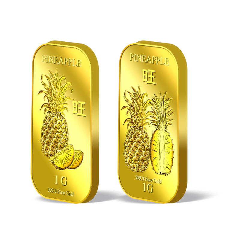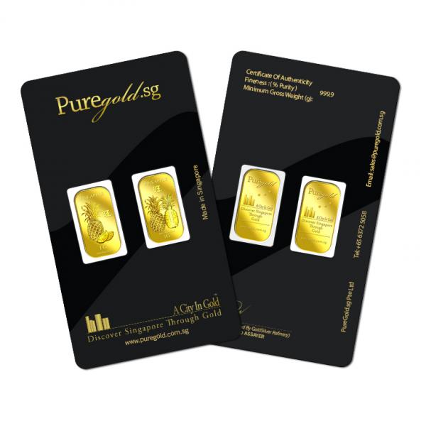 The image is embossed on a 1 gram 999.9 fine gold bar.