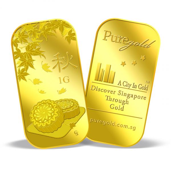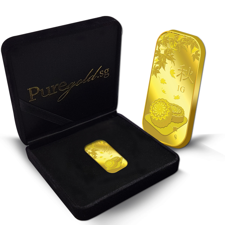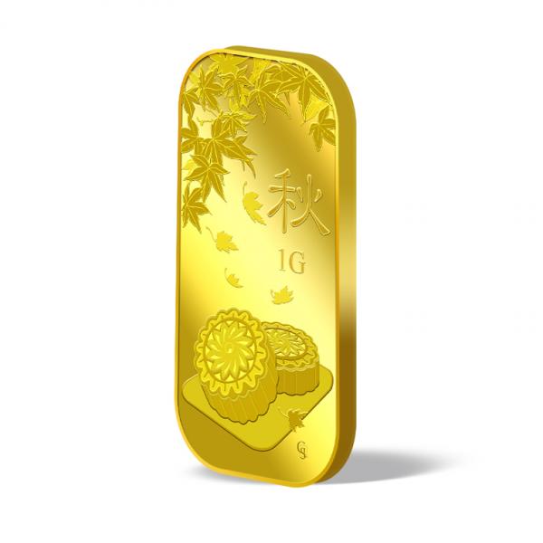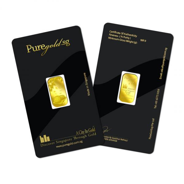 The image is embossed on a 1 gram 999.9 fine gold bar.