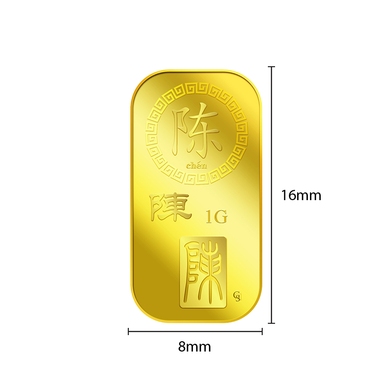 The image is embossed on a 1 gram 999.9 fine gold bar.