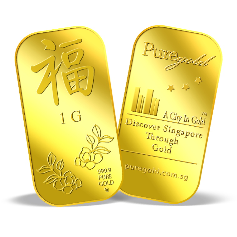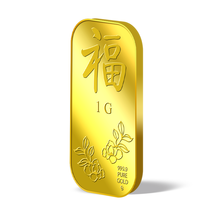 The image is embossed on a 1 gram 999.9 fine gold bar.