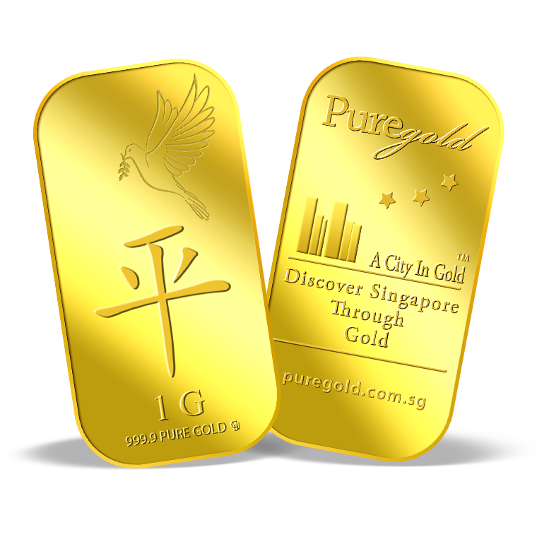 The image is embossed on a 1 gram 999.9 fine gold bar.
