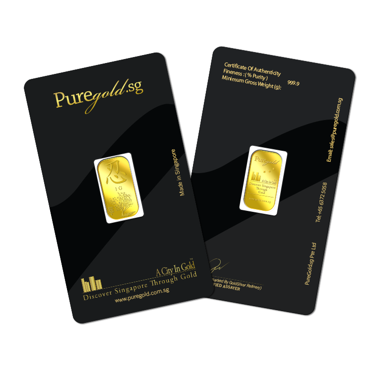 The image is embossed on a 1 gram 999.9 fine gold bar.