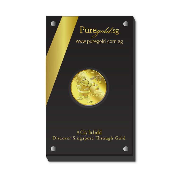 The image is embossed on a 1 troy oz 999.9 fine gold medallion.