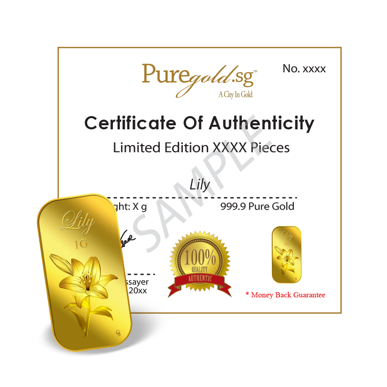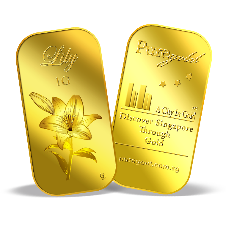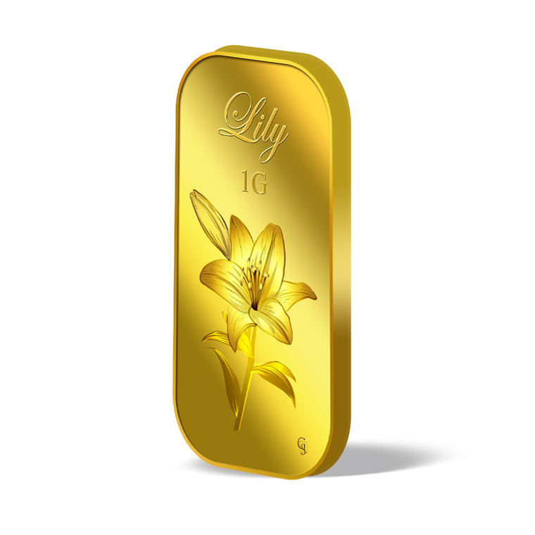 The image is embossed on a 1 gram 999.9 fine gold bar.
