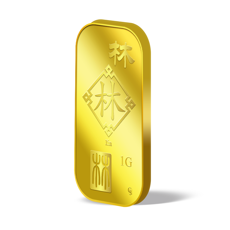 The image is embossed on a 1 gram 999.9 fine gold bar.