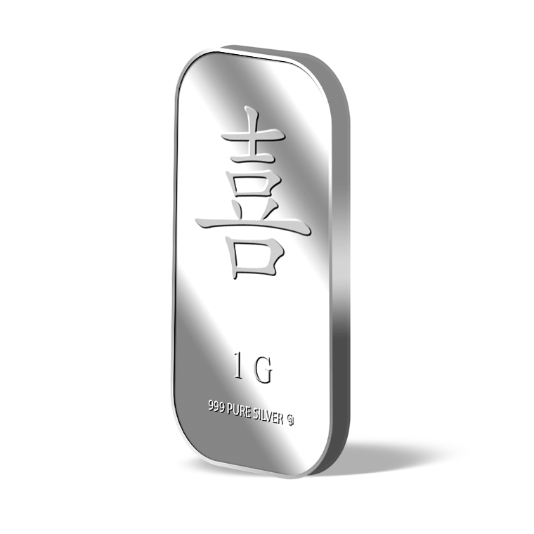 The image is embossed on a 1 gram 999 fine silver bar.