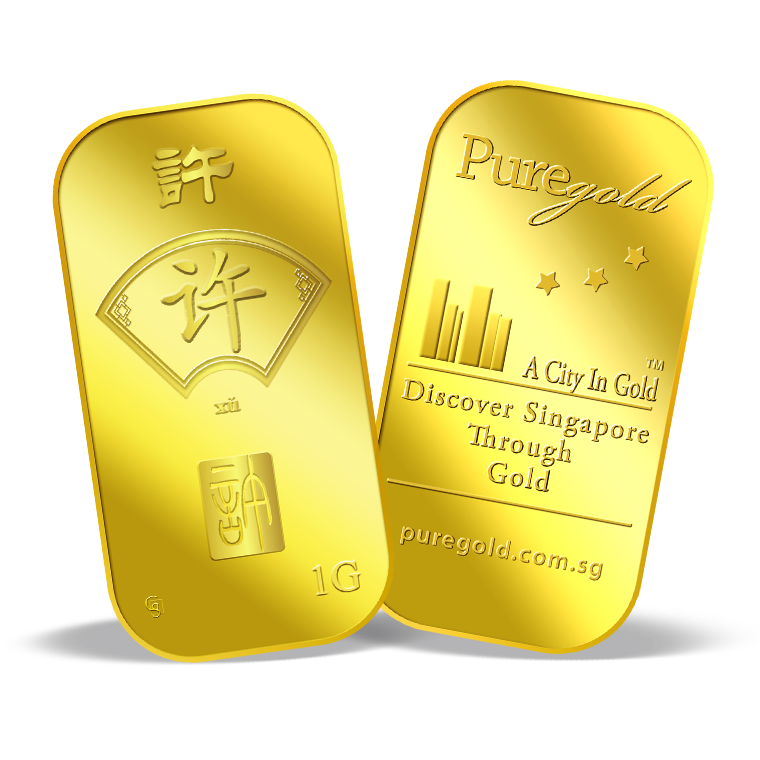 The image is embossed on a 1 gram 999.9 fine gold bar.