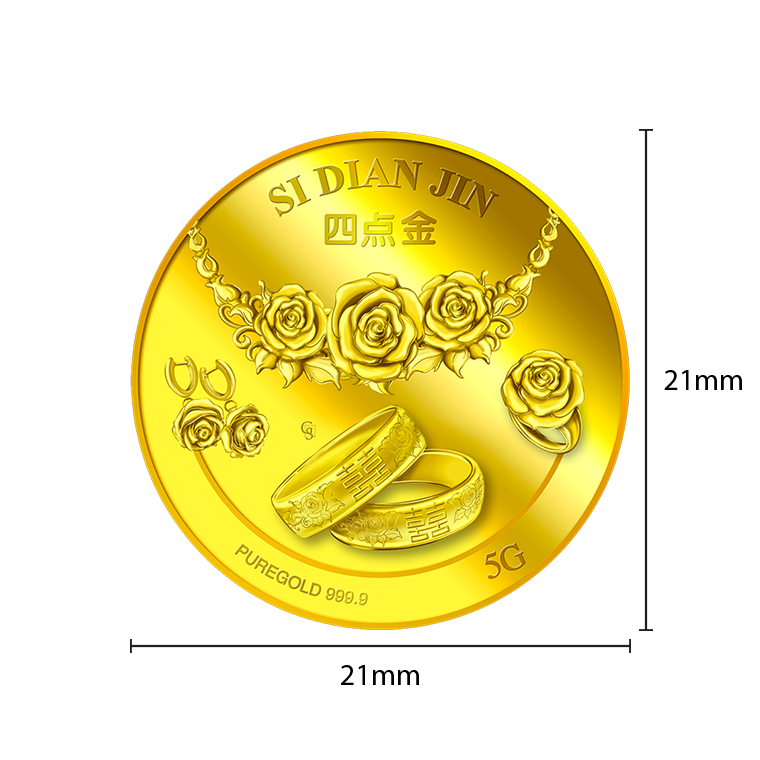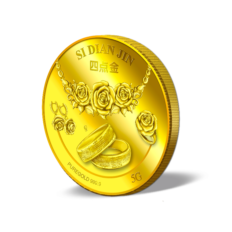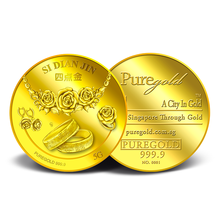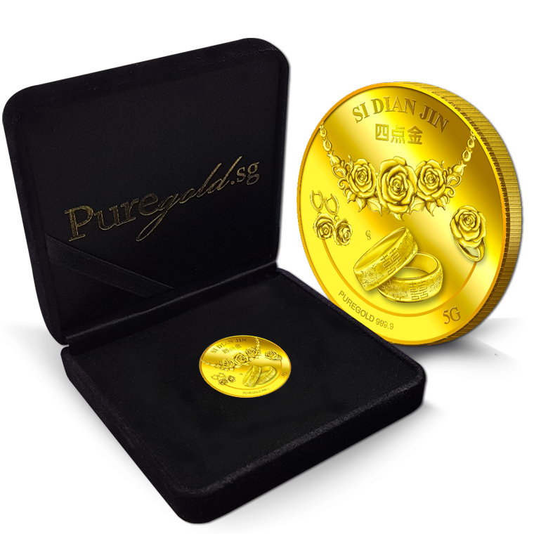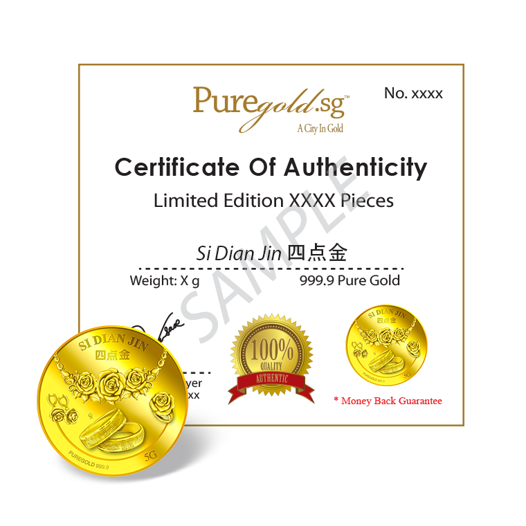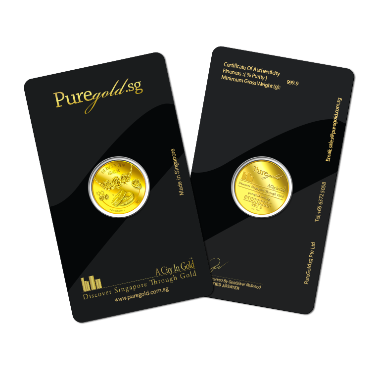 The image is embossed on a 5 grams 999.9 fine gold medallion.