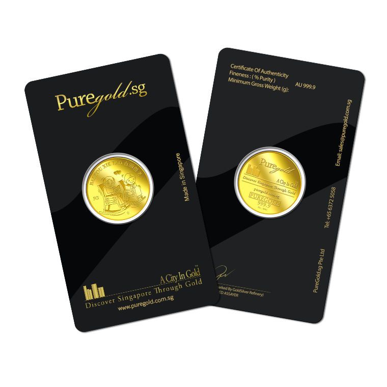 The image is embossed on a 5 grams 999.9 fine gold medallion.