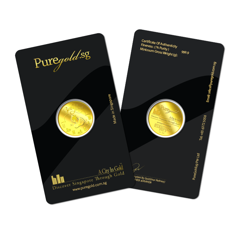 The image is embossed on a 5 grams 999.9 fine gold medallion.