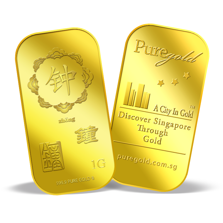 The image is embossed on a 1 gram 999.9 fine gold bar.