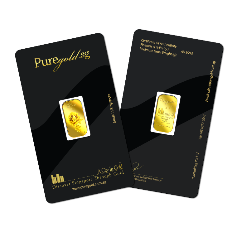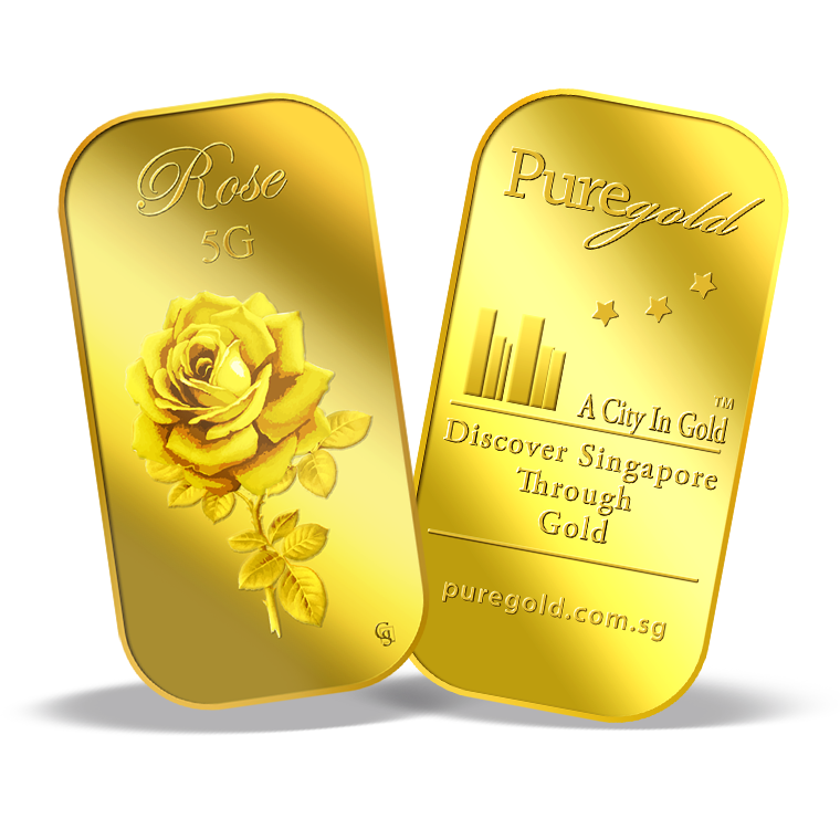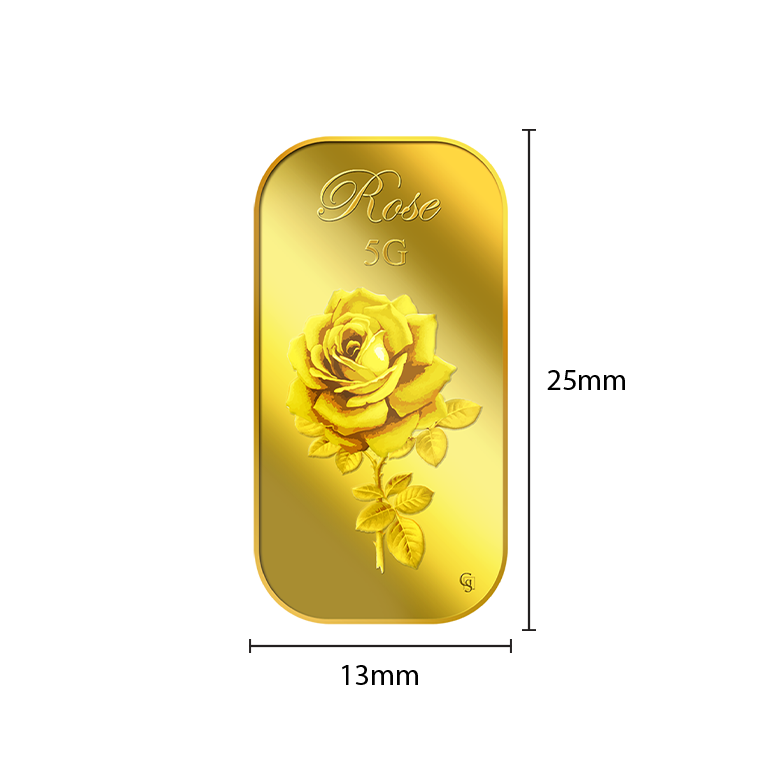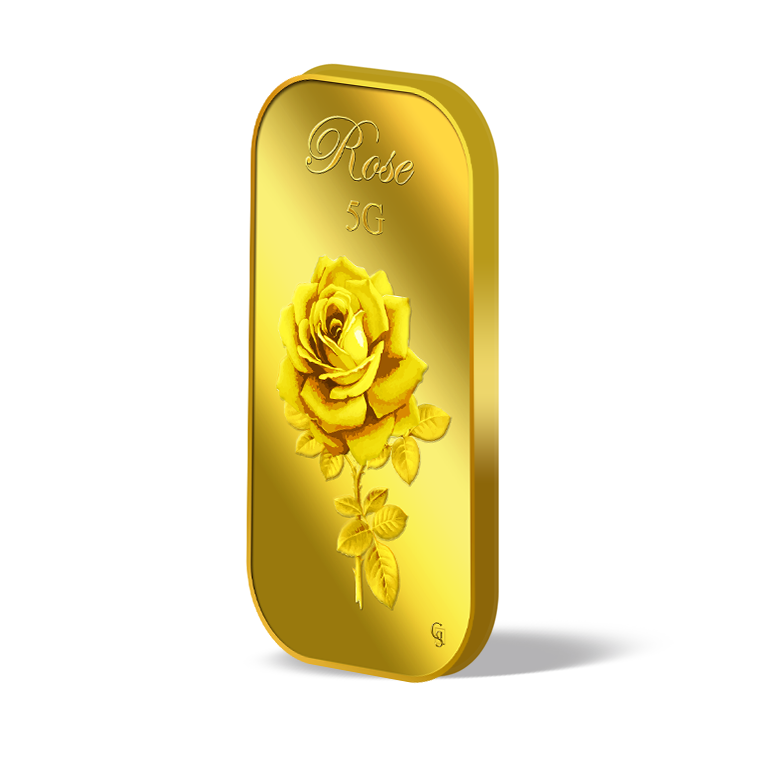 The image is embossed on a 5 grams 999.9 fine gold bar.