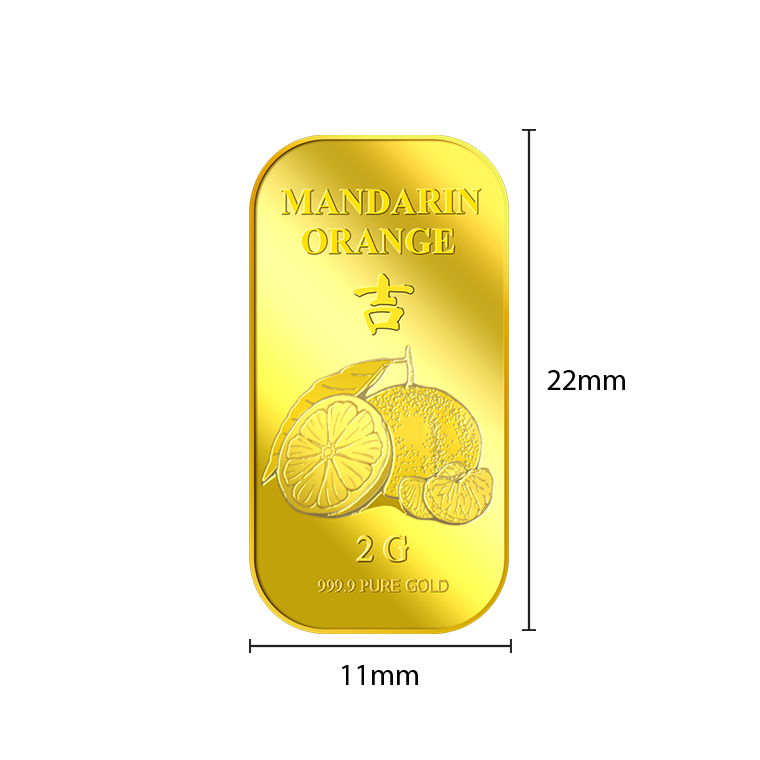 The image is embossed on a 2 grams 999.9 fine gold bar.