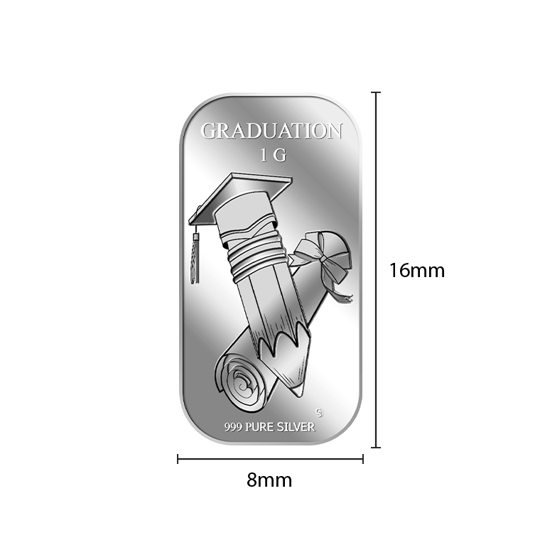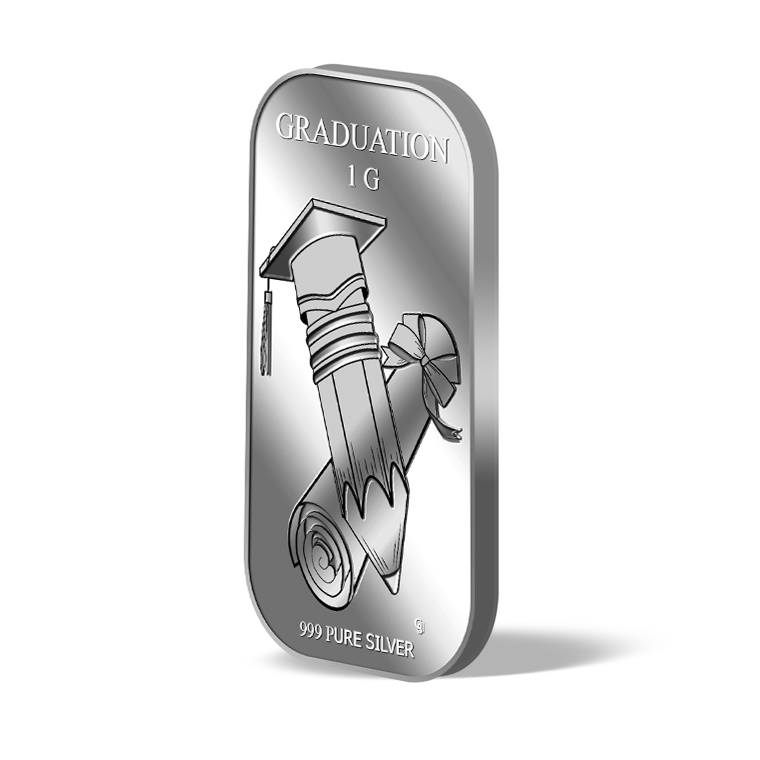 The image is embossed on a 1 gram 999 fine silver bar.