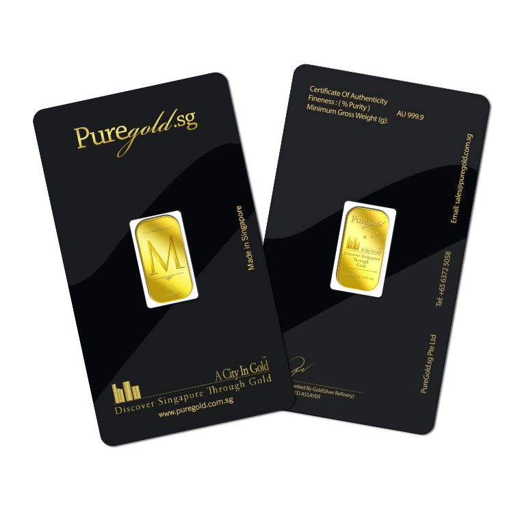 The image is embossed on a 1 gram 999.9 fine gold bar.