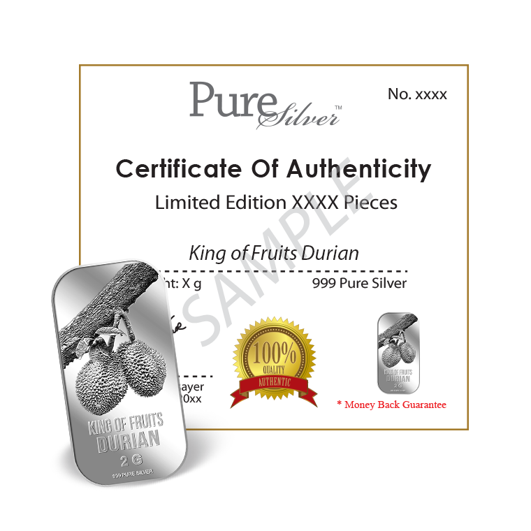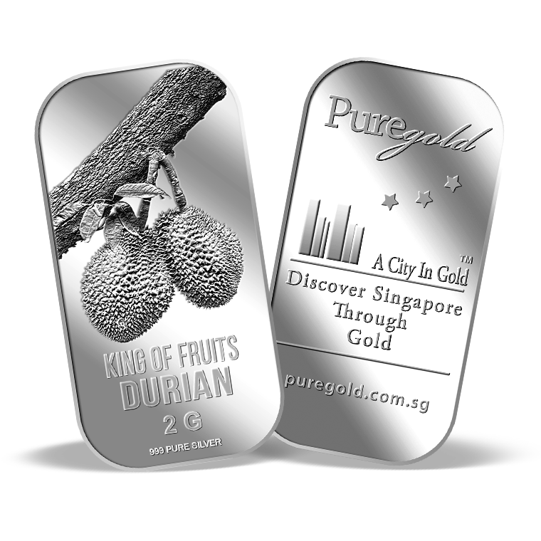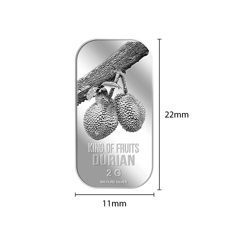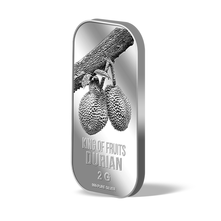 Introducing our newly released King of Fruits, Durian 2g silver bar! A very well-known fruit in Singapore and Southeast Asia, for its taste.