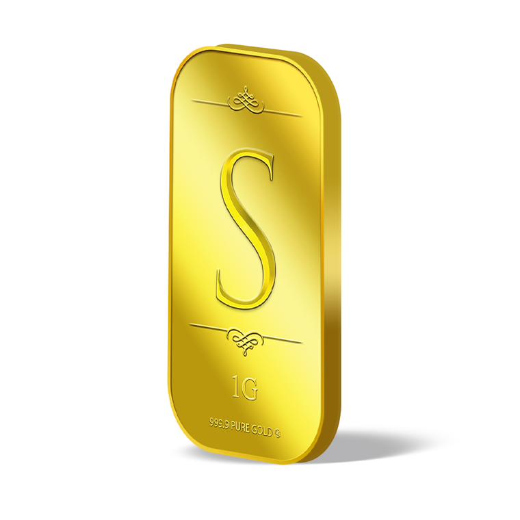 The image is embossed on a 1 gram 999.9 fine gold bar.