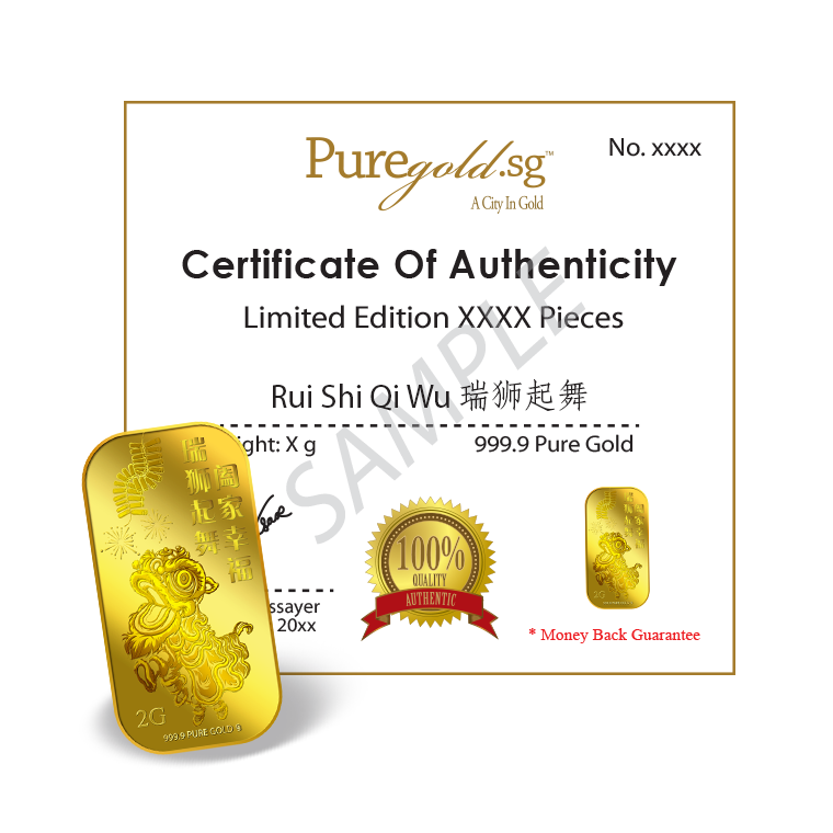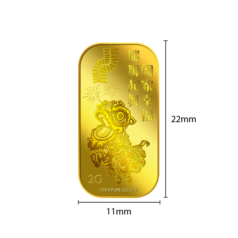 The image is embossed on a 2 grams 999.9 fine gold bar.