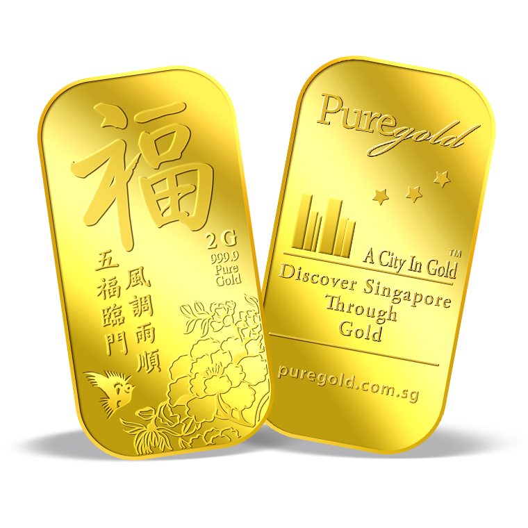 The image is embossed on a 2 grams 999.9 fine gold bar.