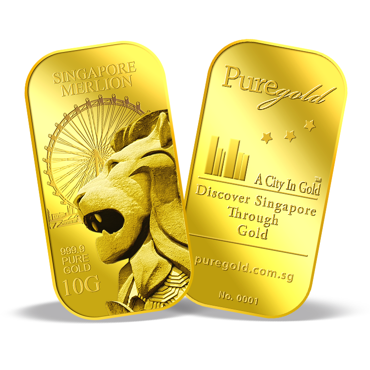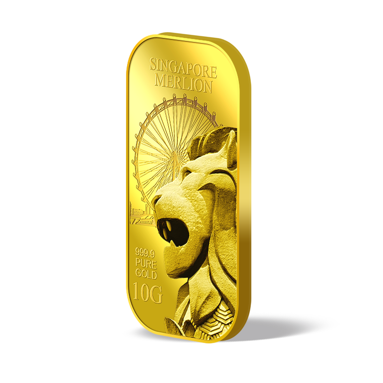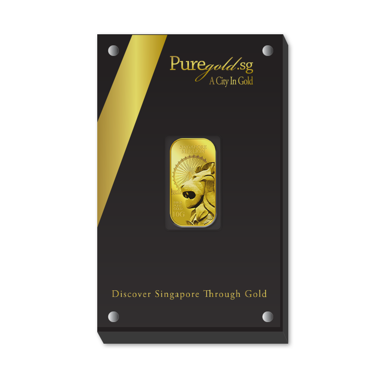The image is embossed on a 10 grams 999.9 fine gold bar.