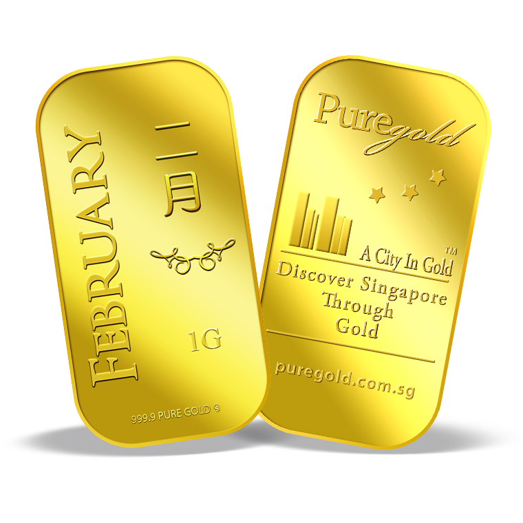 The image is embossed on a 1 gram 999.9 fine gold bar.
