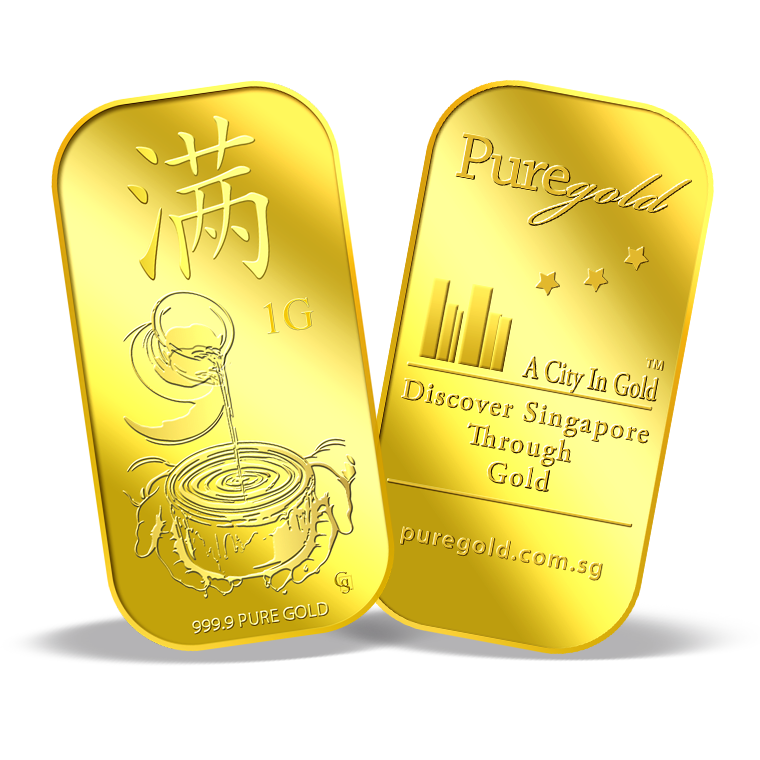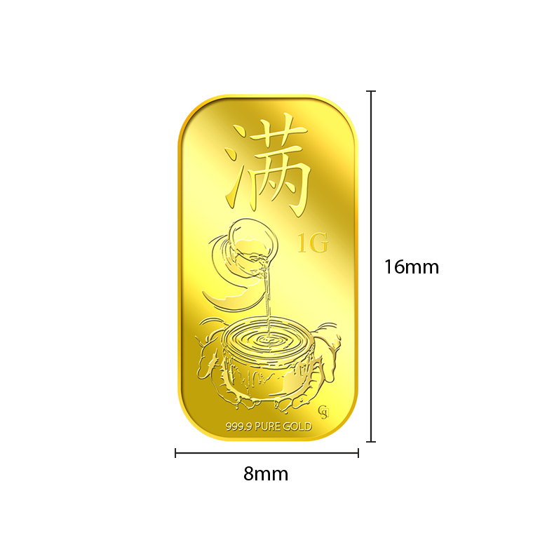 The image is embossed on a 1 gram 999.9 fine gold bar.