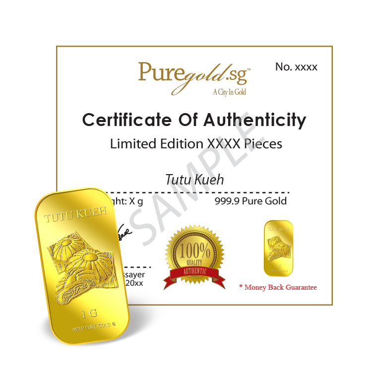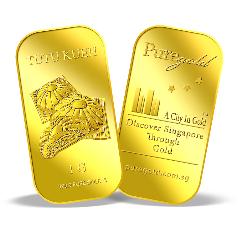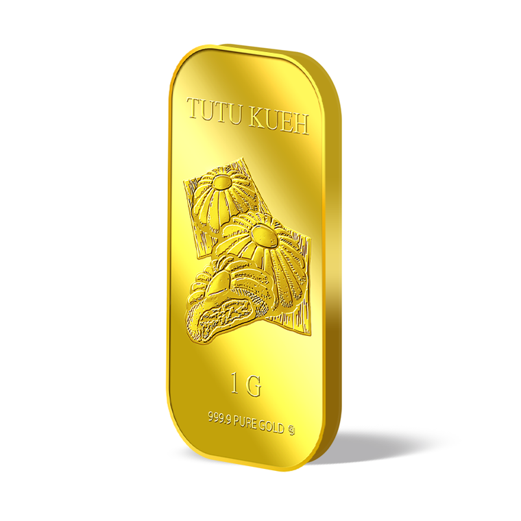 The image is embossed on a 1 gram 999.9 fine gold bar.