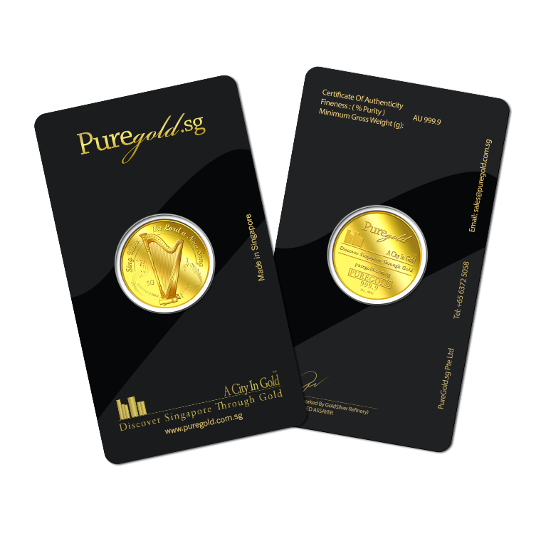 The image is embossed on a 5 grams 999.9 fine gold medallion.