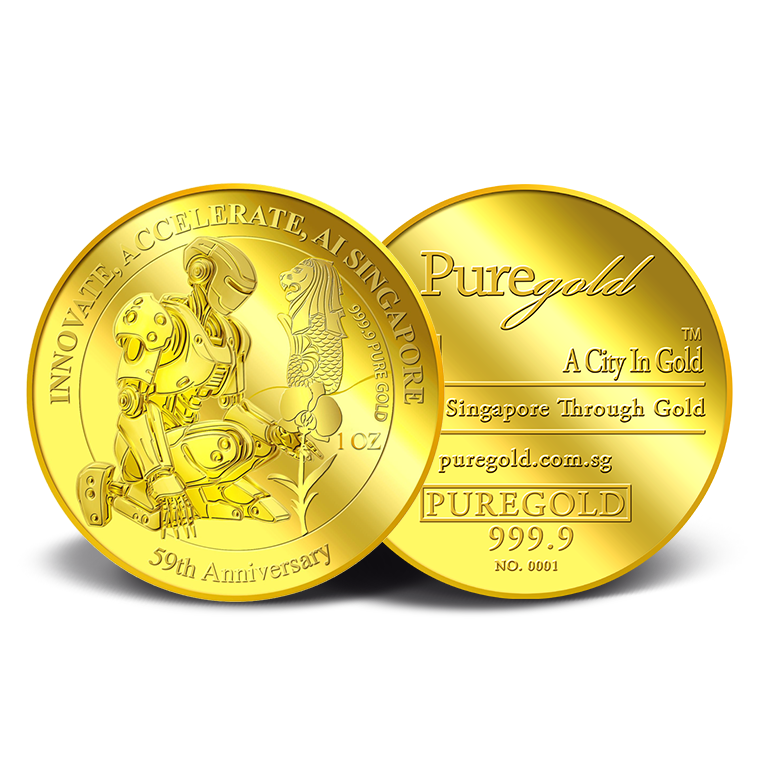 The image is embossed on a 1 troy oz 999.9 fine gold medallion.