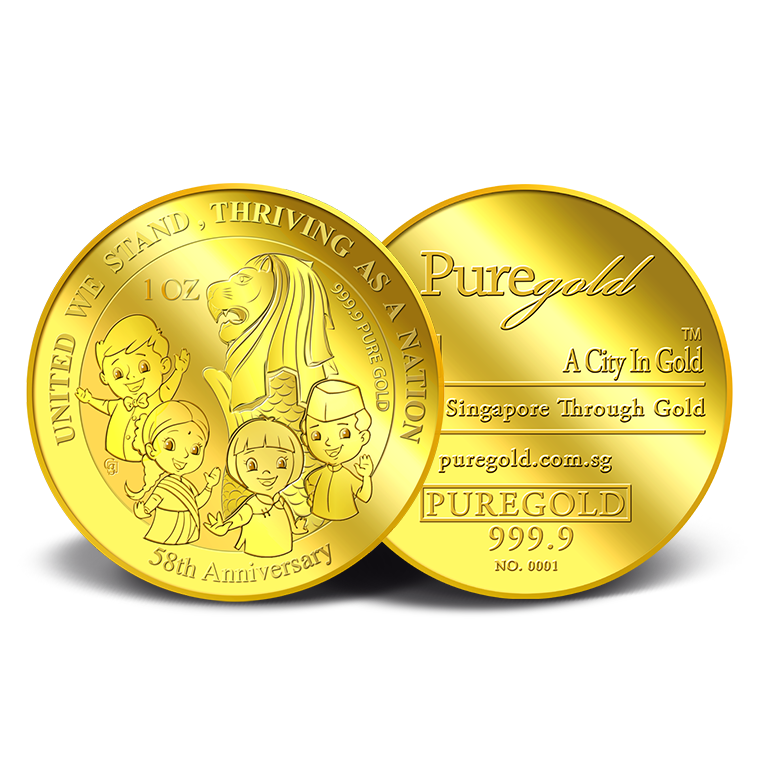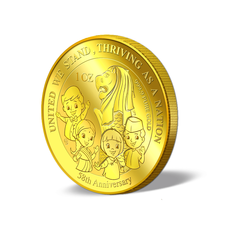 The image is embossed on a 1 troy oz 999.9 fine gold medallion.
