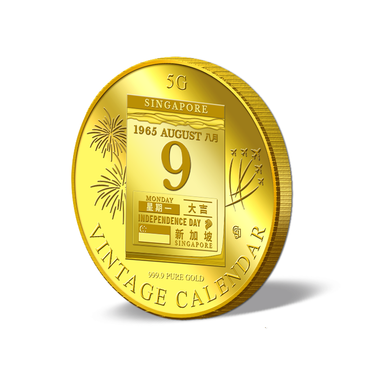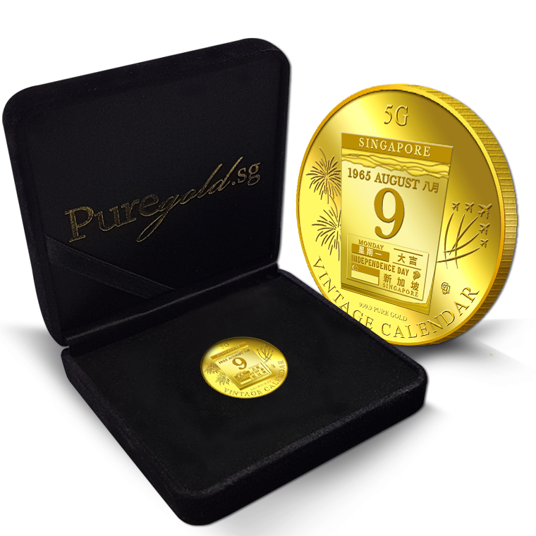 The image is embossed on a 5 grams 999.9 fine gold medallion.
