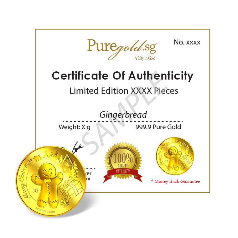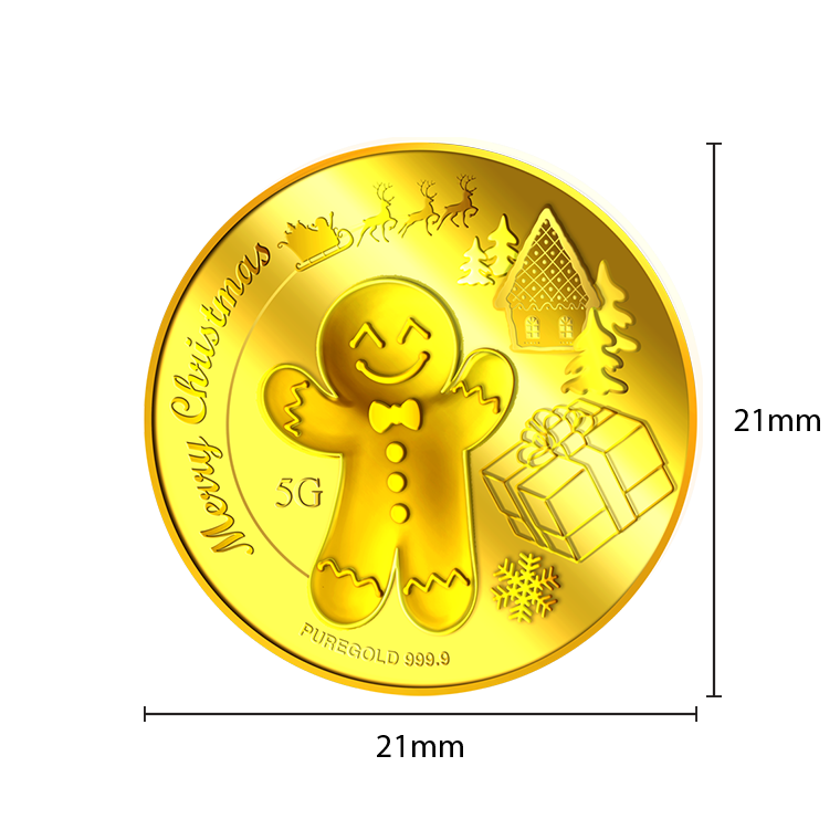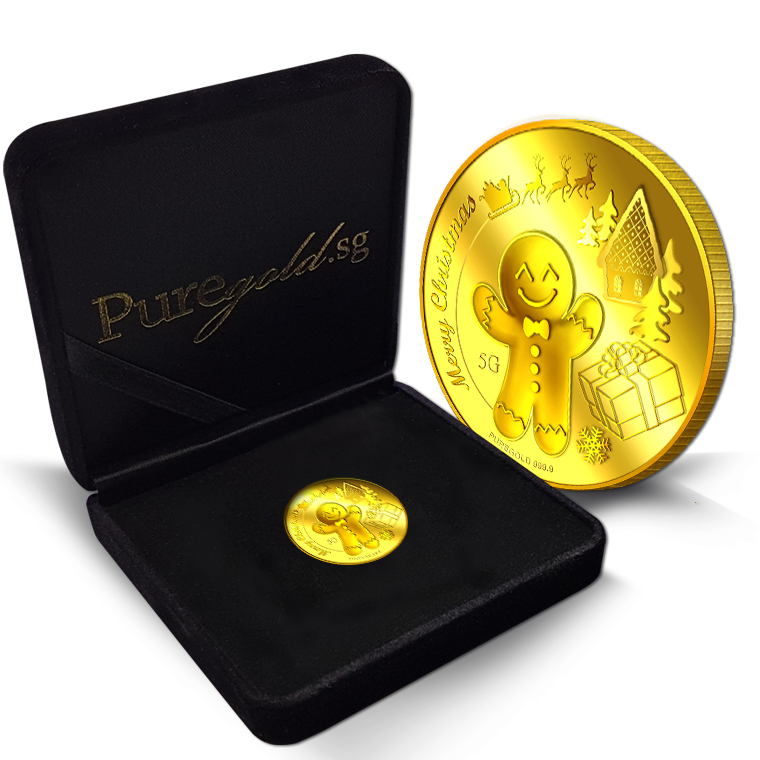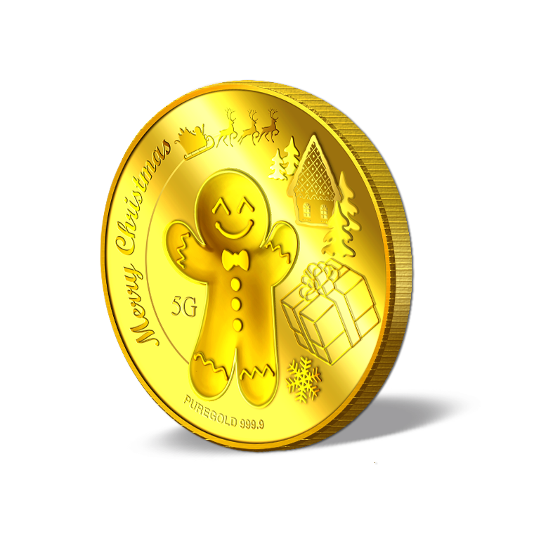 The image is embossed on a 5 grams 999.9 fine gold medallion.