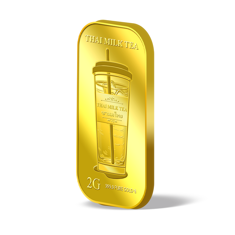 The image is embossed on a 2 grams 999.9 fine gold bar.